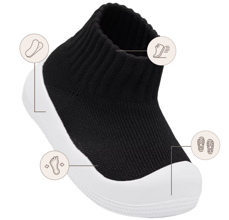 Yes! The high-sock design makes them much harder for little hands to grab and pull off compared to traditional shoes. Plus, unlike rigid shoes that feel restrictive, these feel like favorite socks so kids don't actually want to remove them.