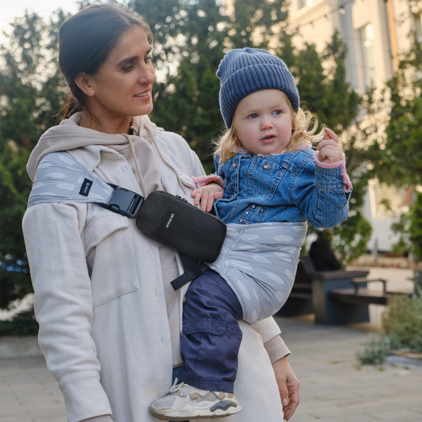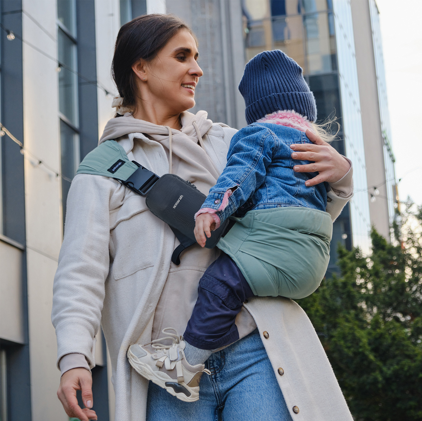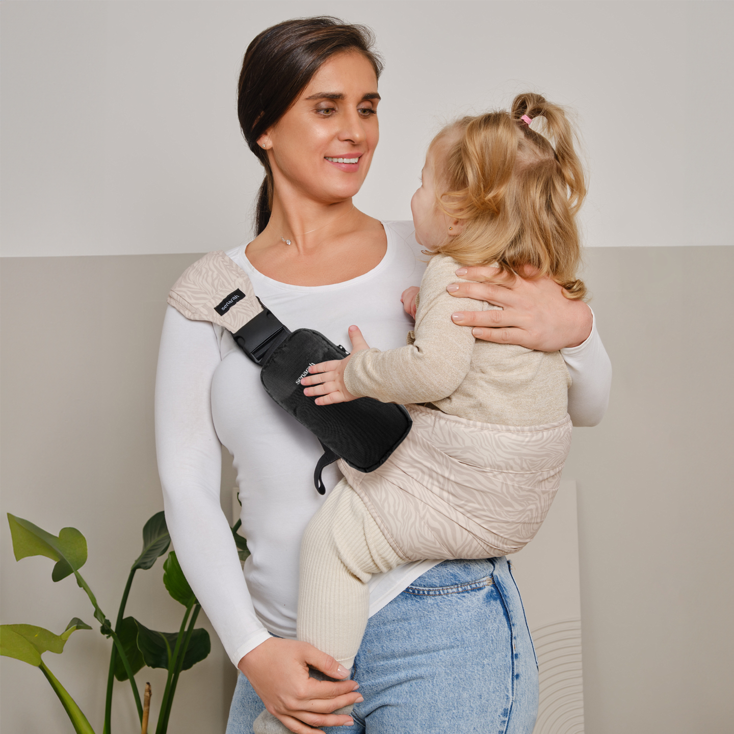 Every mom knows the classic hip carry. This works as a carry-assist that helps take the weight from your arms, back and hips - and put it into the carrier instead